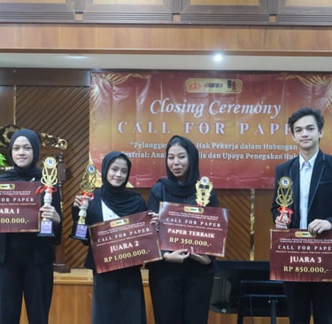 Kegiatan ini ditutup dengan pengumuman pemenang kompetisi pada Closing Ceremony yang diadakan tanggal 21 Juli 2025. Adapun Juara 1 diraih oleh Revia Dwi Agustin (Angkatan 24), Juara 2 diraih oleh Nazneen Nazrul & Nazla Syifa Husna (Angkatan 22), dan Juara 3 diraih oleh Trico Vadio Vincent (Angkatan 23) serta Kategori Best Paper di raih oleh Nazneen Nazrul & Nazla Syifa Husna. Melalui kegiatan perdana ini, LPKH FH Usakti menegaskan komitmennya untuk menjadikan program ini berkelanjutan, sebagai wadah pengembangan potensi akademik mahasiswa hukum, menumbuhkan budaya menulis ilmiah, serta melahirkan generasi peneliti hukum yang kritis, kreatif, dan adaptif terhadap isu-isu hukum terkini.